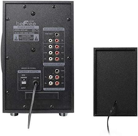Surround yourself with this 5.1 positional Bluetooth audio system for your movies, games and music. This beFree Sound surround sound speaker system features a creative design that improves sonic imaging for stunning audio quality. Enhances bass response and loudness, giving more edge details that improves the frequency distribution of the whole system. The speaker system is coupled with an impressive, down firing ported sub-woofer that adds that all crucial, additional punch to your content that is sure to impress. Includes One 4″ Amplifier, Five 2.5″ Speakers, Remote (requires 2 AAA batteries, not included), 1 Audio Cable, 1 FM Antenna and 3 DVD Connection Cables