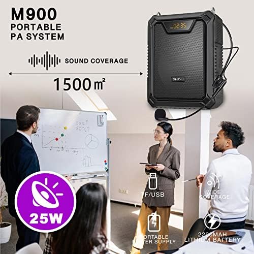 Portable Voice Amplifier 25W Rechargeable Speaker with Microphone Wired Headset Waterproof IPX6 Bluetooth 5.0 Personal Voice Enhancer for Teachers, Training, Meeting, Outdoor, Beach, etc M900