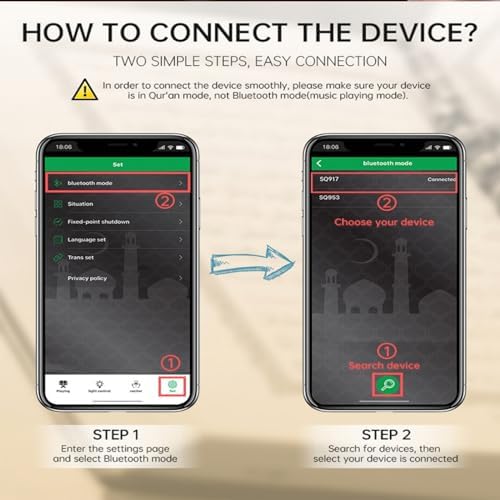 【APP & Remote Control】This wireless quran lamp speaker is equipped with a remote control. You can easily control the Bluetooth speaker by remote control without finding or touching it. You can also directly scan the QR code on the outer package or manual to log in.
