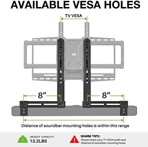 【GOOD SERVICE】10-year friendly US-Based customer service. Not sure this mount will work with your soundbar? Our engineers will simulate the installation for you. Please let us know the following information: 1. Complete TV models. 2. Complete soundbar models. 3. The distance between the two mounting holes on the bottom or back of the soundbar.