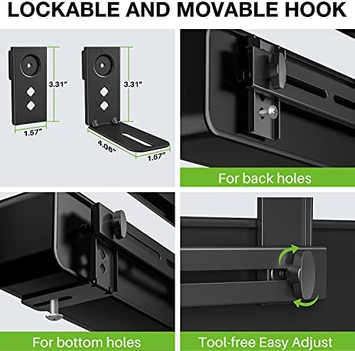 【LOCKABLE HOOKS】Two movable solid base holders are perfectly to secure your soundbars with holes on the back or bottom. Very sturdy once locked in place avoid soundbar swings and slides.