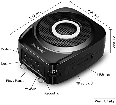 【Voice Amplifier Buletooth】Support Bluetooth, TF card, USB flash disk to play music. Support repeat single tune, loop all music and switch songs. Supporting 3.5mm AUX audio input, this voice amplifier wireless can work as speaker of computer, phone, MP3 / MP4 and other AUX.